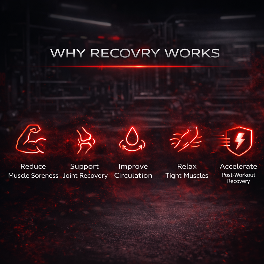• Supports faster recovery after heavy lifts, long runs, and high-volume training